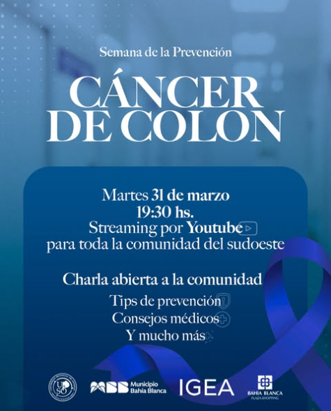 En el marco de la Semana de la Prevención del Cáncer de Colon, invitamos a la comunidad a participar de una charla abierta, un espacio para informarse, concientizar y promover hábitos de cuidado y detección temprana.