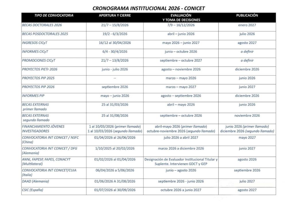 Cronograma Institucional 2026 – CONICET